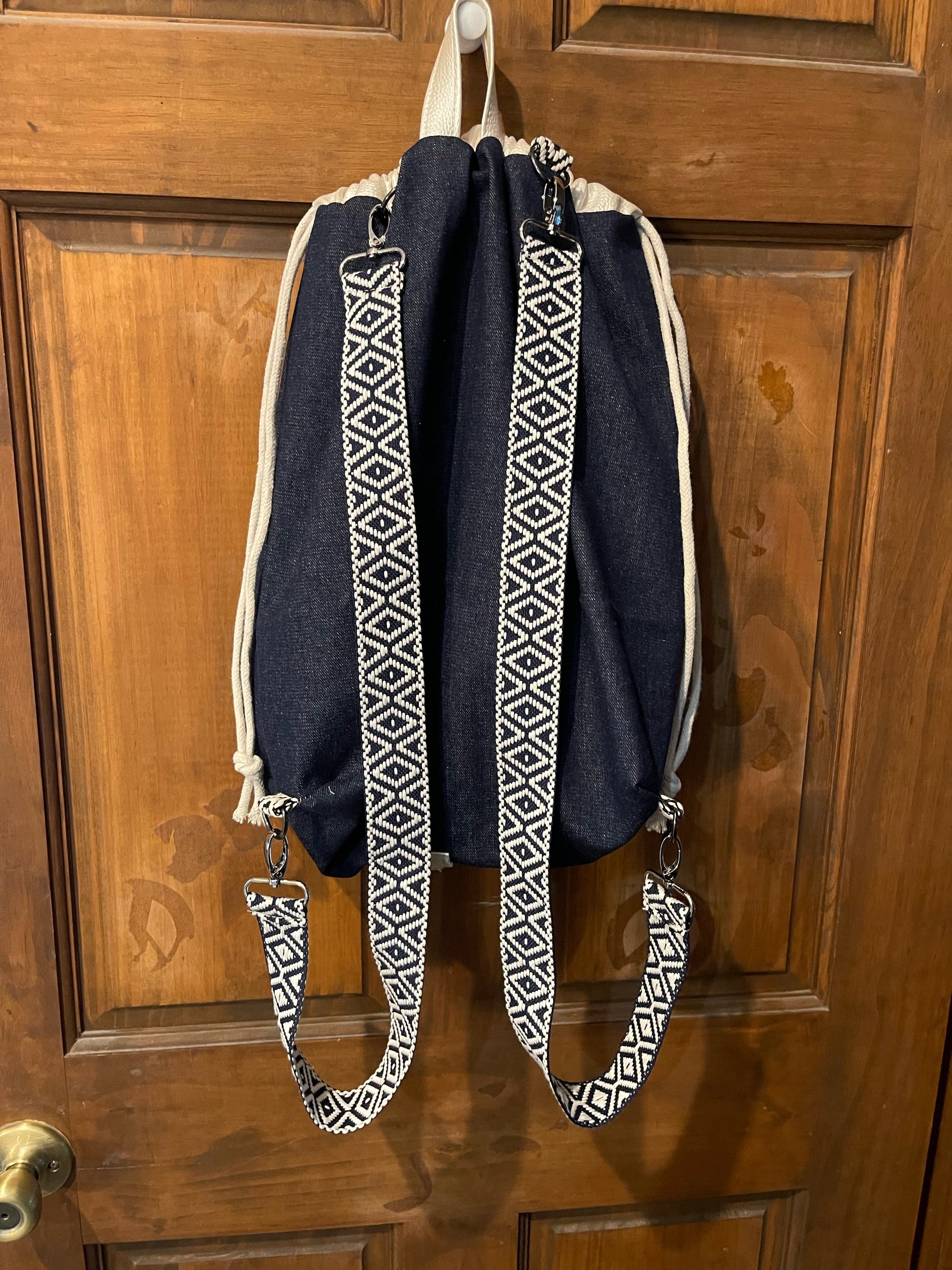 Image 1 of 2 Image 2 of 2 Backpack-Blue Jean $45.00 Backpack made of heavy Jean material. Fully lined including inner pocket. Quantity: Add To Cart Added! Backpack made of heavy Jean material. Fully lined including inner pocket.
