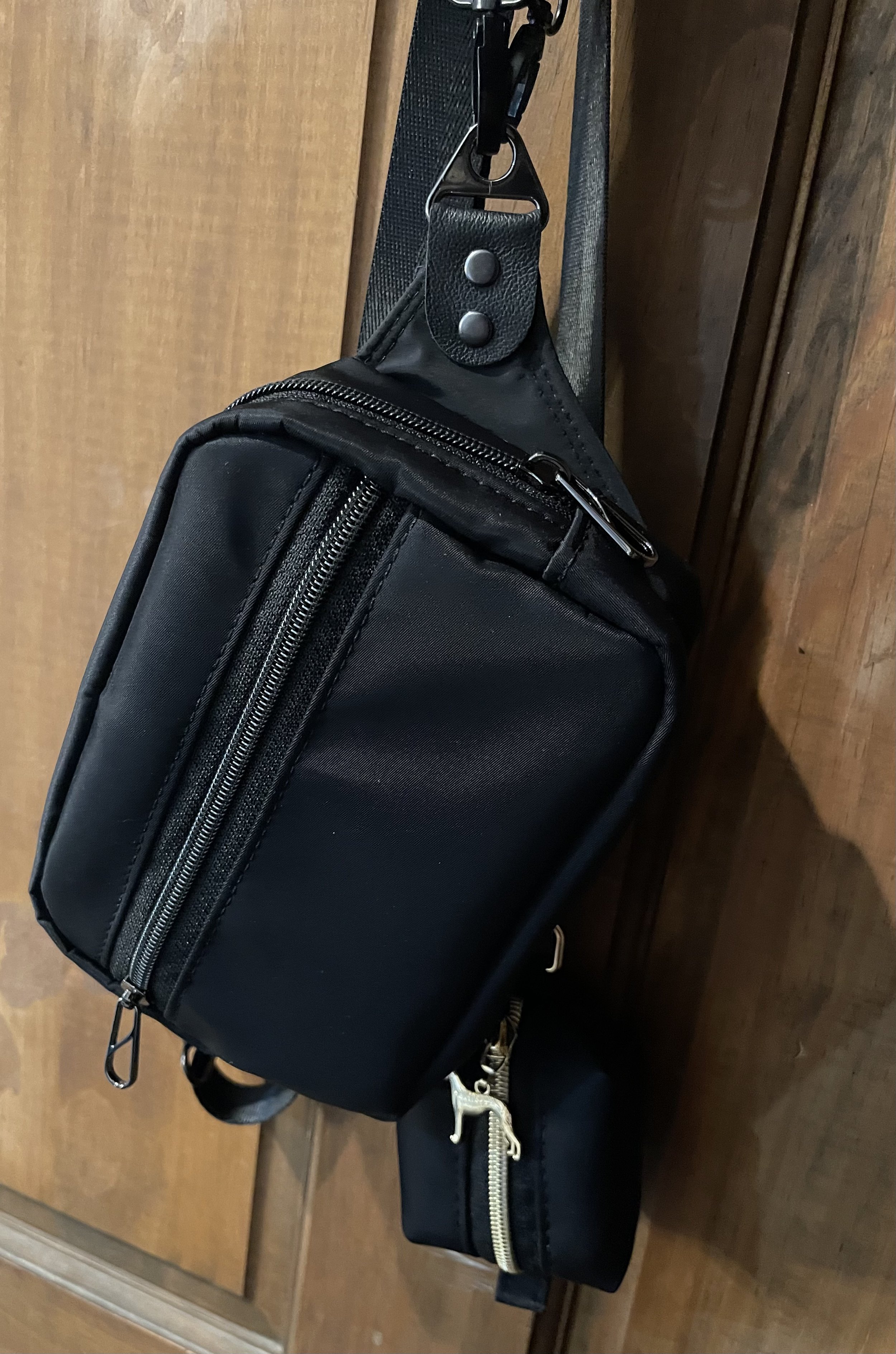 This light weight crossbody made with endurance fabric can be secured to your body while visiting theme parks. It’s light enough for runners to use while running. You can purchase the addition pet bag for added benefit on your walks. Measures 7 w × 4.5h